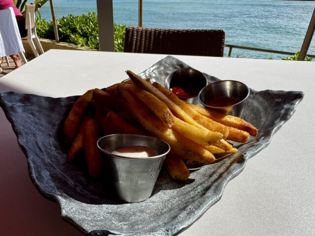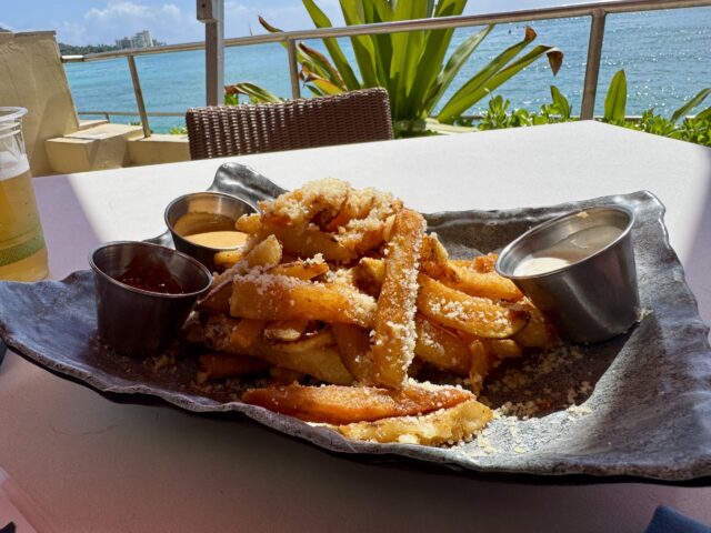 ガーリックパルメザンフライは昨日のフレンチフライに香ばしいガーリックを追加した一品。小食の我々にちょうど良い量。