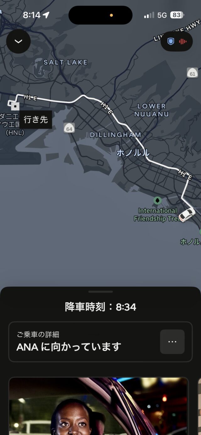 シェラトンワイキキからウーバータクシーで空港へ向かいます。