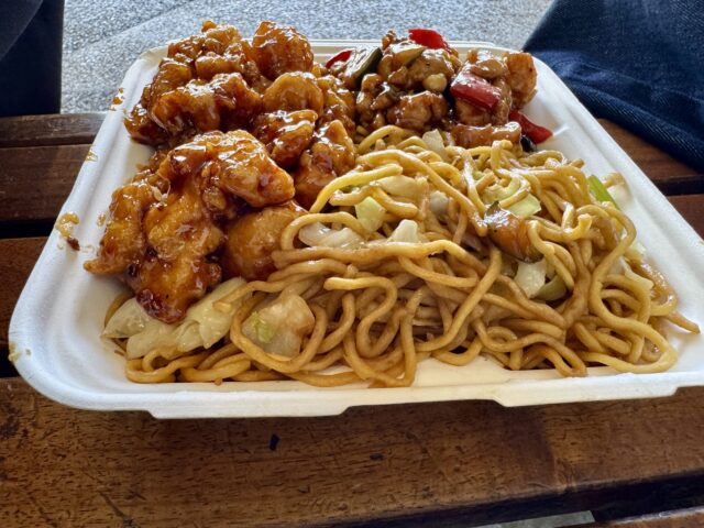 有名なオレンジチキンと、甘辛い野菜、焼きそばを注文。